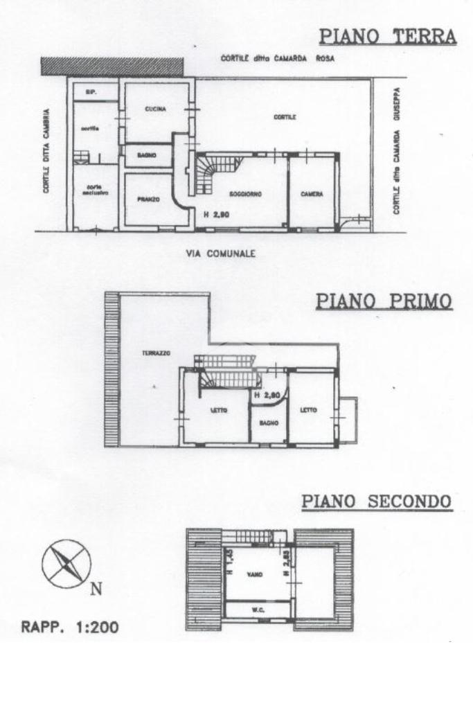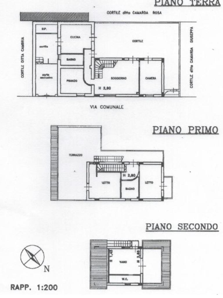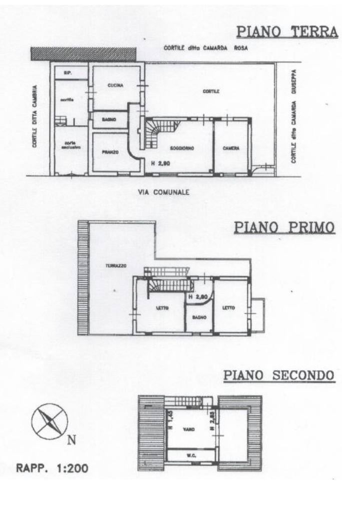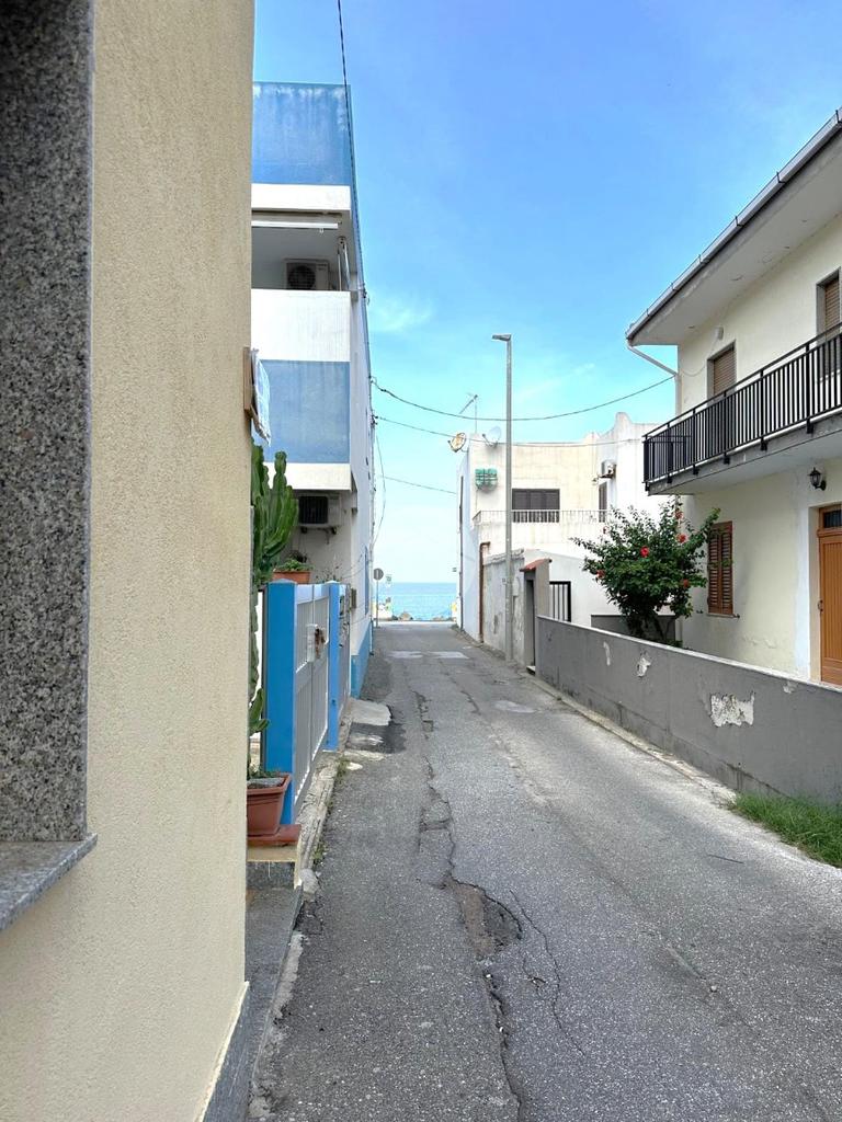 Al piano terra, oltre alla corte privata con passo carrabile, si trova la zona giorno composta da soggiorno, cucina abitabile, due camere, bagno e cortile esterno. Al primo piano, vi è la zona notte ed il terrazzo con vista mare; infine al secondo ed ultimo piano vi è un ulteriore camera con bagno.